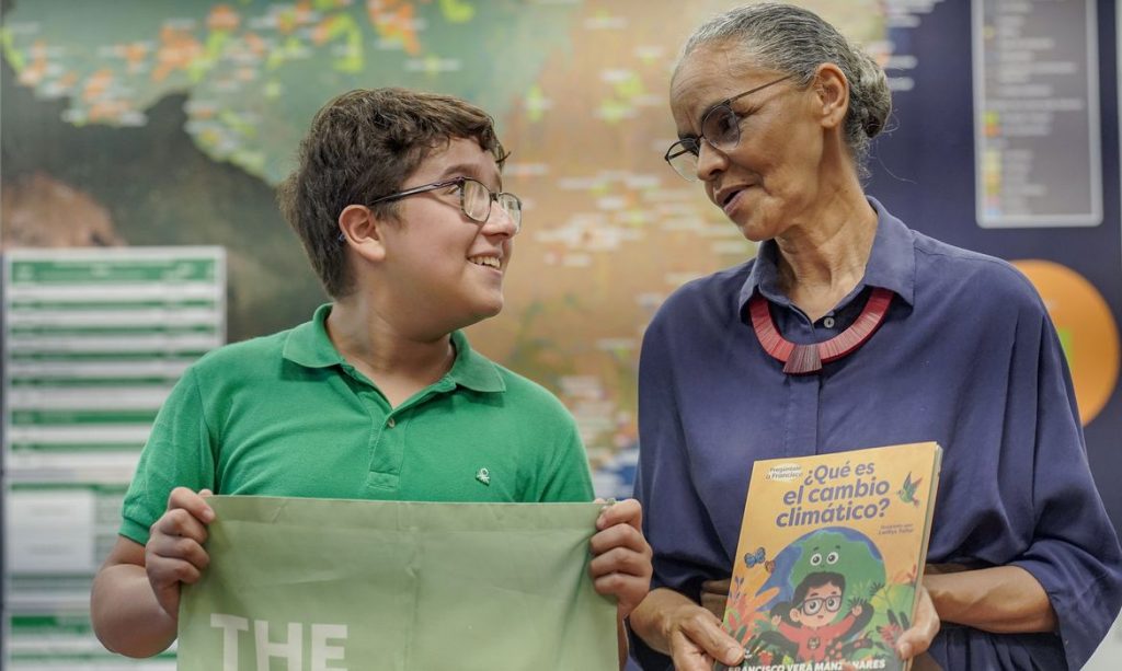 Ela lembrou com emoção o início de seu envolvimento com questões políticas e ambientais, quando tinha 17 anos, ao lado do líder seringueiro Chico Mendes. Francisco também entregou à ministra um livro infantil de sua autoria, que explica de maneira didática como é o processo de mudanças climáticas.