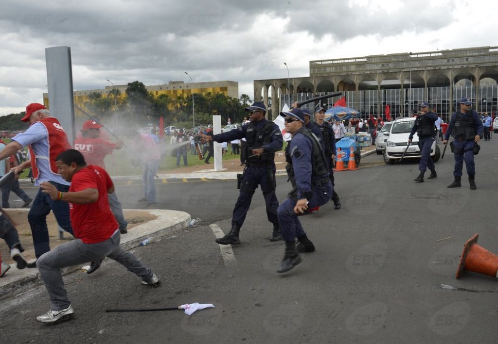 Questionado sobre o fato de o deputado Vicentinho ser atingido por gás de pimenta, ele afirmou que foi Vicentinho quem se dispôs a ficar ao lado dos manifestantes contra a polícia. O policiamento na Esplanada dos Ministérios foi reforçado e já chegaram mais homens da polícia ao local.