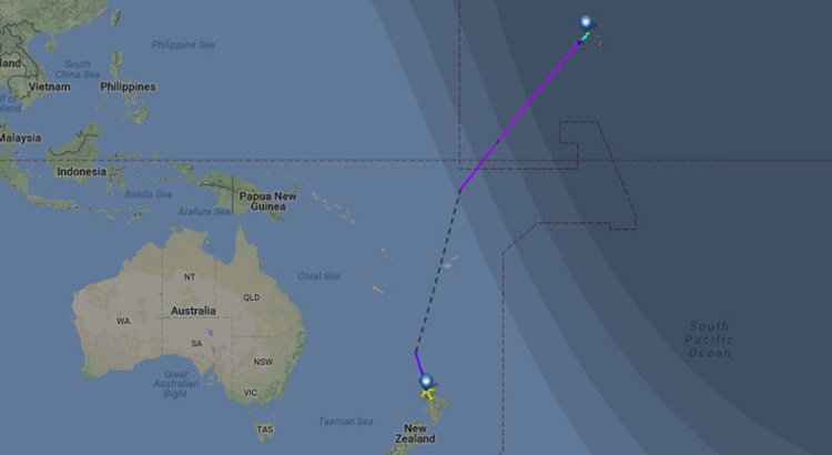 A Linha Internacional de Data no Oceano Pacífico faz com que a cidade havaiana fique 23 horas atrás no tempo da Oceania, mesmo estando a “apenas” 10 mil quilômetros de distância dela. A “viagem no tempo” foi registrada em um site internacional de tráfego aéreo e percebida por usuários do Twitter.