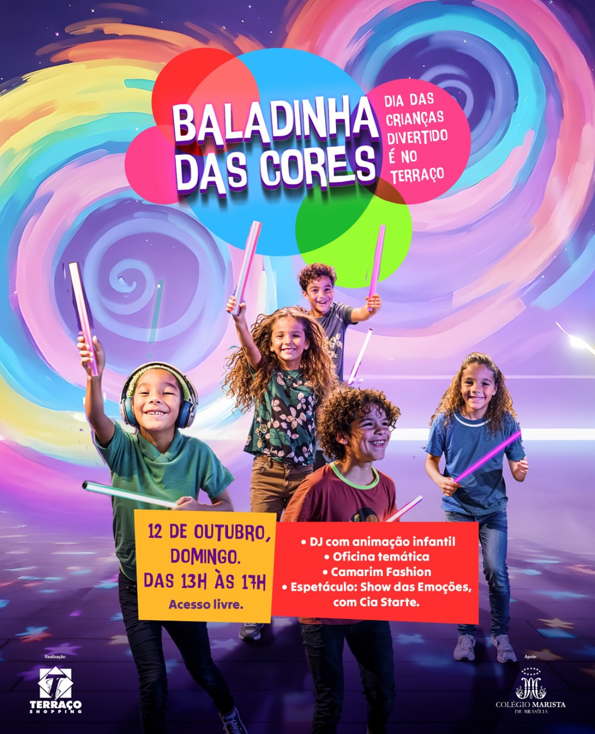 O Terraço Shopping preparou uma programação especial para tornar o Dia das Crianças ainda mais inesquecível. No domingo, 12 de outubro, das 13h às 17h, a Praça Central será transformada no palco da Baladinha das Cores do Terraço, um evento gratuito repleto de música, diversão e atividades para toda a família.