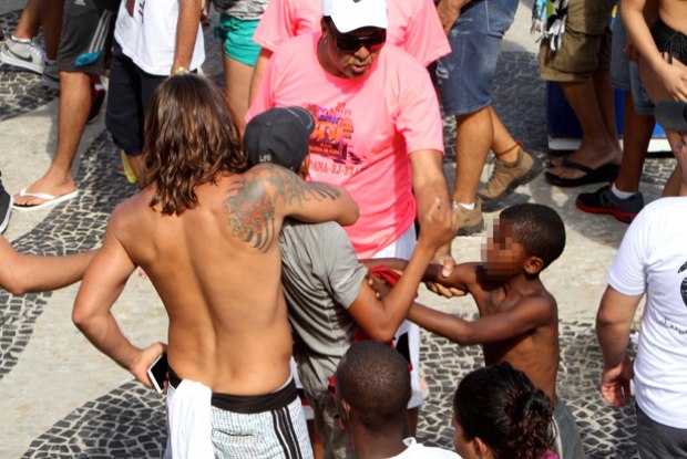 Ágil, ele correu pela areia e depois pela rua, perseguido por policiais militares e populares. Tirou a camisa para mudar de aparência, pulou grades e até escalou um automóvel. Acabou detido.