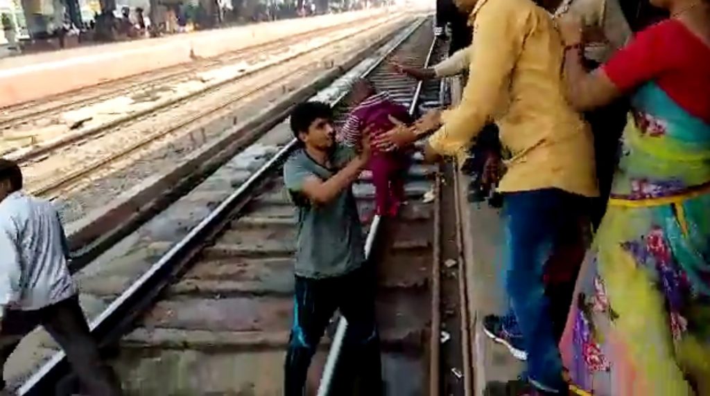 Uma bebê que caiu nos trilhos de um trem em uma estação indiana se salvou depois de cair no espaço entre a linha férrea e a plataforma. O incidente foi difundido amplamente nas redes sociais nesta quinta-feira (22).