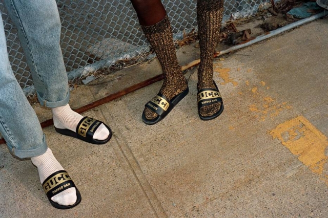 A Givenchy fez chinelos de borracha de 295 dólares com seu logo estampado na faixa. A Gucci tem um modelo recém-lançado em sua parceria com Dapper Dan. A versão de mercado do slide não custa mais do que 10 dólares. Se a autenticidade é a chave disso tudo, “é mais legal ter a versão de grife ou a original?”, pergunta Susie. “A original é melhor, assim como qualquer outra coisa. É a coisa honesta e íntegra a se fazer.”