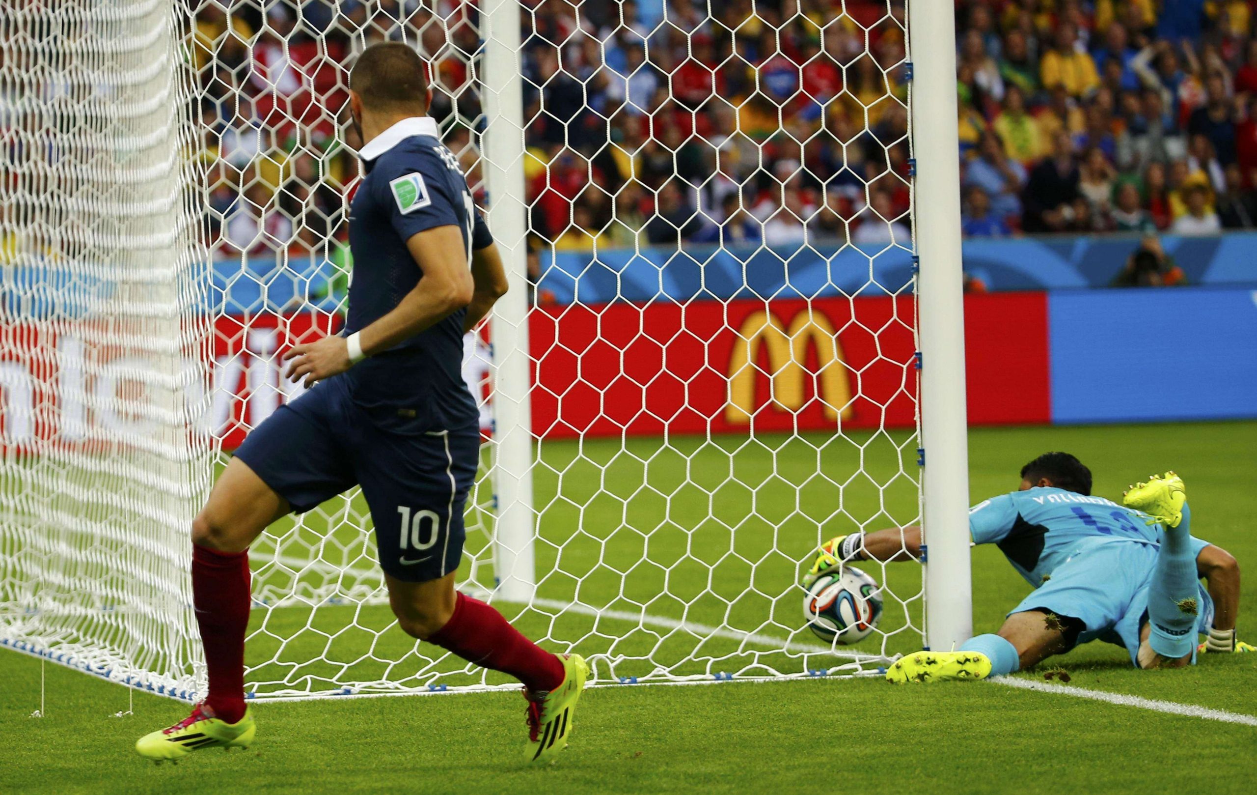 O lance, aliás, foi o primeiro em que realmente foi necessária a utilização da tecnologia da linha do gol desenvolvida para a competição. Primeiro, o chute de Benzema bateu na trave, depois voltou em direção ao goleiro hondurenho que, com um toque, fez a bola ir para trás. Valladares ainda fez a defesa, mas a linha já havia sido ultrapassada totalmente.