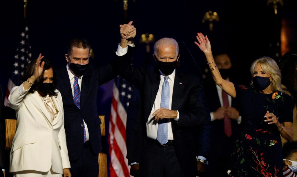 A chapa vencedora da eleição dos Estados Unidos, formada pelos presidente eleito Joe Biden e a vice-presidente eleita Kamala Harris, lançou hoje (8) a plataforma online da transição presidencial e listou como principais desafios a pandemia, a crise econômica, o clamor por justiça racial e as mudanças climáticas.