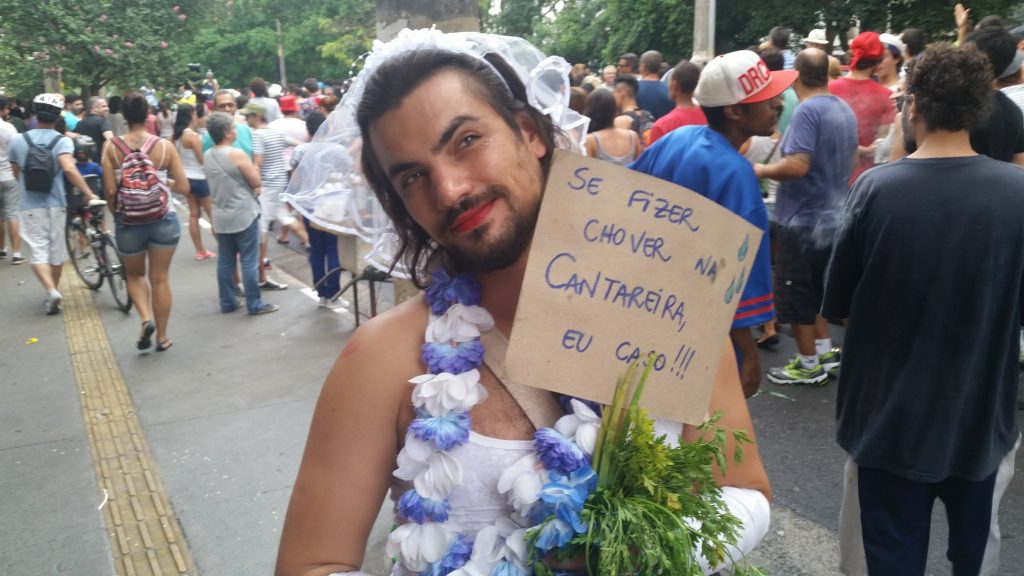 “Sempre viajo no carnaval. Esta é a primeira vez que fico em São Paulo e pretendo curtir blocos todos os dias”, disse o publicitário Gabriel Rezende, 30 anos, fantasiado de mulher. “Antes ia para o Rio, para São Luis do Paraitinga. Desta vez, por causa da crise financeira, achei melhor economizar e ficar por aqui mesmo. Mas estou gostando. Os blocos de São Paulo estão bons, não precisa mais viajar. E aqui, acabou o bloco é só ir para casa.”