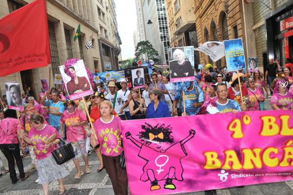 O Bloco dos Bancários saiu nesta segunda, 1, pelas ruas do centro da capital paulista levando aos foliões o tema da diversidade. O desfile do bloco, que faz parte da programação oficial do carnaval de rua da cidade, foi puxado pela Banda Alegria. A saída foi na Praça Antônio Prado e o percurso foi por algumas vias do centro.