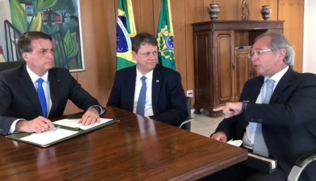 A mensagem foi publicada junto com uma foto de Bolsonaro com os ministros da Economia, Paulo Guedes, e da Infraestrutura, Tarcísio Freitas. De acordo com o presidente, “num orçamento cada vez mais curto”, é normal os ministros buscarem recursos em outras fontes para obras essenciais. “Contudo, nosso norte continua sendo a responsabilidade fiscal e o teto de gastos”, afirmou.