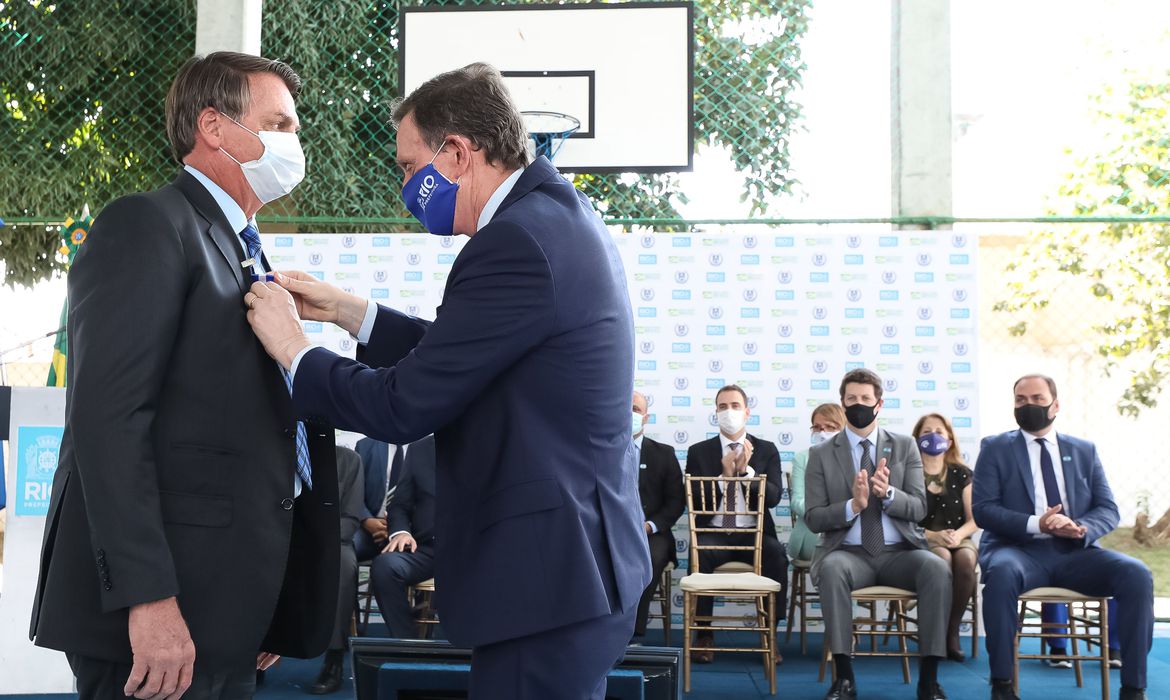 O presidente Jair Bolsonaro participou nesta sexta (14) da inauguração da Escola Municipal Cívico-Militar General Abreu, em Rocha, bairro da zona norte da capital carioca. É a primeira escola desse modelo no município, iniciativa do Ministério da Educação (MEC) em parceria com o Ministério da Defesa, que coloca uma equipe de militares da reserva para participar da gestão educacional, em apoio ao corpo docente.