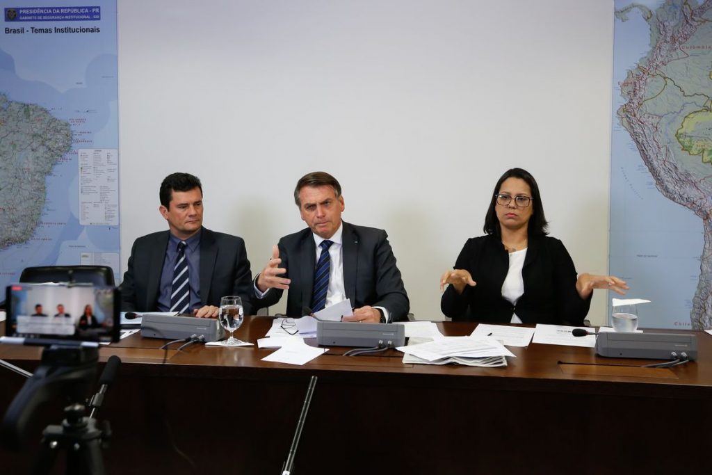 Em seguida, Bolsonaro defendeu o pacote anticrime e passou a palavra a Moro. O ministro citou alguns pontos do projeto, dentre eles uma maior segurança jurídica para aqueles que agirem em legítima defesa e o fim do benefício a detentos conhecido como “saidão”, em situações específicas. “[Por exemplo,] o pai que matou a filha ser beneficiado no saidão do Dia dos Pais. O projeto acaba com isso”, disse ele. Outra proposta é impedir a progressão de pena para detentos vinculados a organizações criminosas.