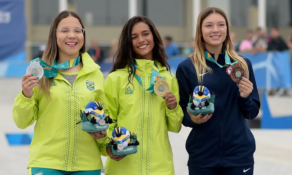 O Brasil conquistou na manhã deste sábado (21) as suas primeiras medalhas nos Jogos Pan-americanos de Santiago (Chile). O destaque foi o ouro de Rayssa Leal no skate street, prova disputada na Explanada de Deportes Urbanos, no Estádio Nacional de Santiago, e na qual Pâmela Rosa ficou com a Prata.