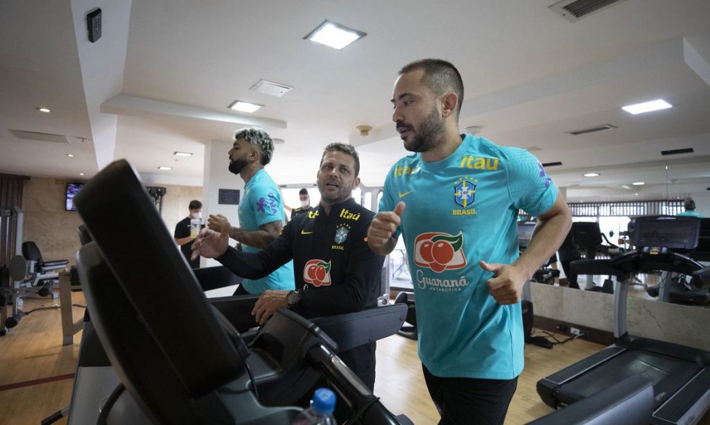 Ainda sem grande parte dos convocados – que chegaram no começo a noite -, Everton Ribeiro e Gabriel Barbosa, ambos do Flamengo, realizaram um trabalho na academia.