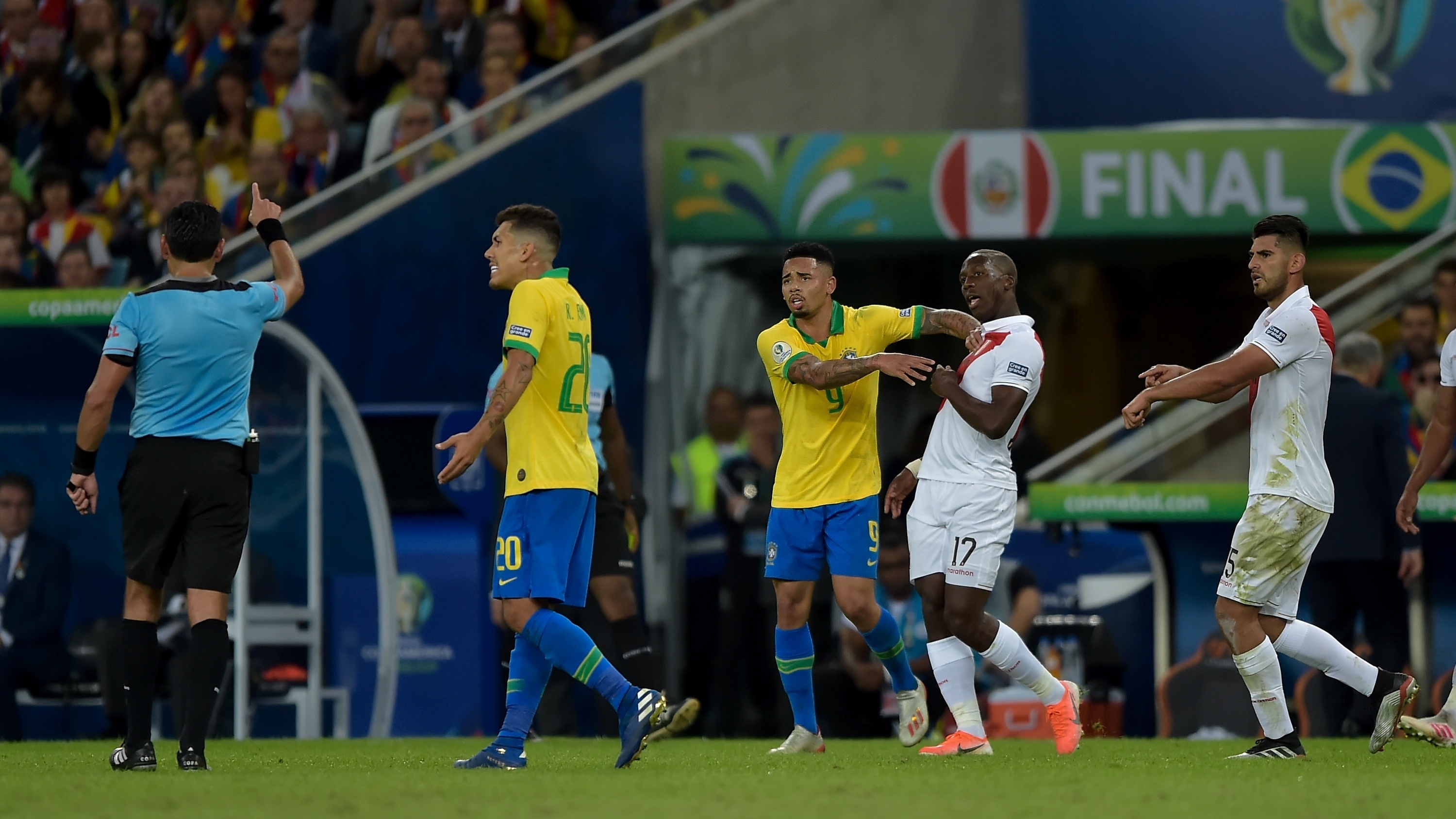 O Maracanã ficou mudo. O primeiro gol sofrido pelo Brasil no torneio fez os jogadores em campo gesticularem entre si com o pedido para não se abater. Deu certo. Aos 47, Arthur recuperou uma bola, conduziu e contou com o escorregão de um peruano para deixar Gabriel Jesus livre para tirar de Gallese. O desempate era o calmante necessário para o Brasil terminar o primeiro tempo livre de qualquer agonia.