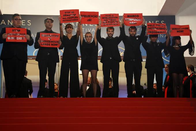 A equipe do filme Chuva é Cantoria na Aldeia dos Mortos denunciou no tapete vermelho do Festival de Cannes o “genocídio indígena” no Brasil com cartazes em vários idiomas. A produção da brasileira Renée Nader Messora e do português João Salaviza foi filmada na comunidade Krahô, no estado de Tocantins, durante nove meses.