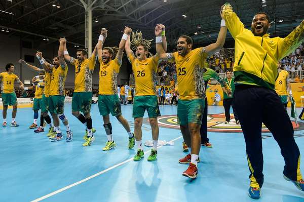 Outro primeiro lugar no pódio foi conquistado pela seleção masculina de handebol, com vitória sobre a Argentina, na prorrogação, por 29 a 27. A equipe brasileira terminou o primeiro tempo com um placar desfavorável, de 11 a 9 para os argentinos. Ao final do segundo tempo, o placar estava empatado em 24 a 24. Os brasileiros poderiam ter vencido a partida no tempo normal caso tivessem convertido um tiro de 7 metros no último minuto do tempo regulamentar.