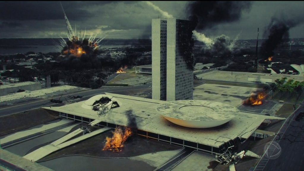 A novela mostrou o fogo consumindo a Praça dos Três Poderes, furacões e tempestades destruindo prédios e casas e catástrofes naturais ao redor do mundo.