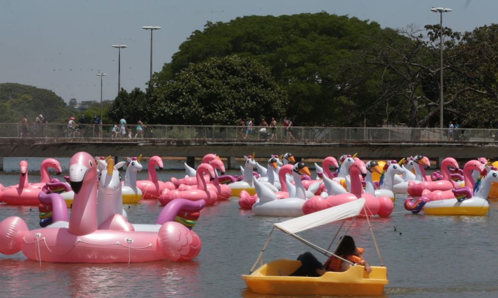 Cartões-postais importantes da capital federal estão reabertos. Um deles, o Pedalinho do Parque da Cidade, muito marcante na vida dos moradores da cidade nas décadas de 1980 e meados da década de 1990, renasceu totalmente diferente para o Festival Flutua. Até 31 de outubro, o evento privado, inédito no país, vai misturar música, cinema e teatro a bordo de boias gigantes de bichos ancorados no laguinho do parque.