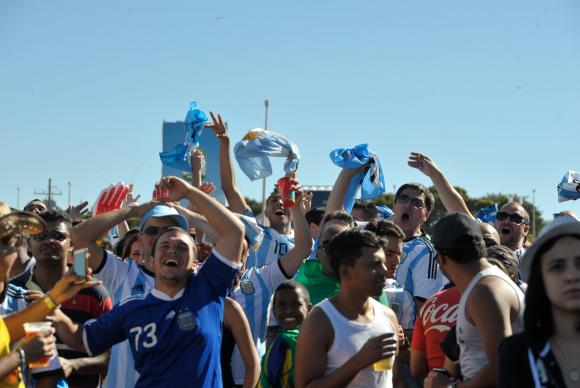 Na Fifa Fan Fest, os argentinos estavam em menor número que os brasileiros e a comemoração era contida, mas as pinturas, bandeiras e gritos de guerra marcavam presença. “Mesmo com a rivalidade no futebol, todos nos trataram muito bem. Faz parte do esporte”, disse o jornalista esportivo Gérman Rodriguez de 23 anos. Ele veio para o Brasil em um carro com cinco pessoas, viajando por 3,5 mil quilômetros. Sem ingresso, recorreu ao telão da Fifa.
