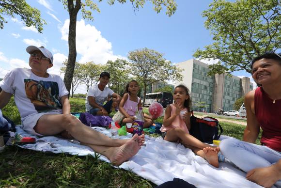 A doméstica Rosa Dantas, que mora em São Sebastião, aproveitou o feriado para fazer um piquenique na Esplanada dos Ministérios com o marido e as duas filhas. “Hoje é um dia muito legal, ganhamos presente, a comida é diferente, e a gente vem brincar nesse lugar que eu adoro”, disse uma das filhas de Rosa, Ana Clara, 8 anos.
