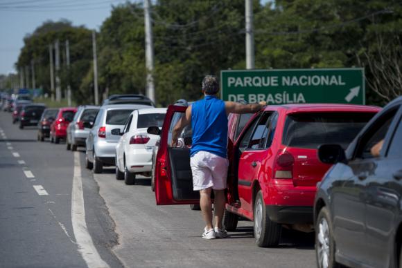 O calor e a falta de chuvas no Distrito Federal – atípicos para esta época do ano – devem continuar até o início da próxima semana, de acordo com o Instituto Nacional de Meteorologia (Inmet). Com isso, a opção para milhares de brasilienses se refrescarem tem sido as piscinas do Parque Nacional de Brasília, também conhecido como Água Mineral, que vem operando em capacidade máxima todos os dias, com filas de carro que vão da portaria ao acostamento da rodovia mais próxima.