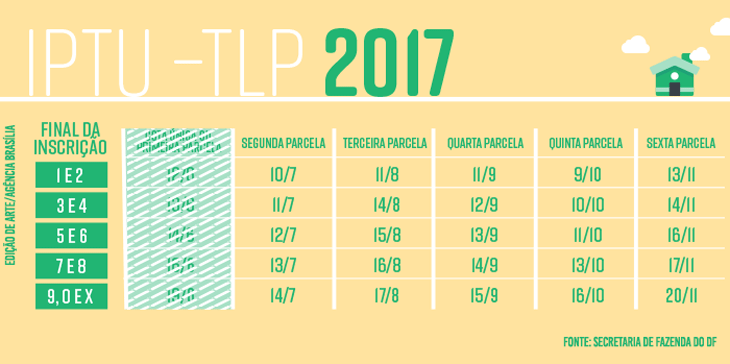 Em 2017, o DF espera arrecadar R$ 924 milhões com o IPTU e com TLP. Desse total, R$ 648,3 milhões já entraram nos cofres do Executivo por meio do pagamento da primeira parcela ou da cota única.