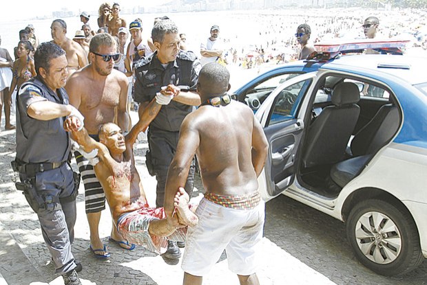 A confusão ocorreu com um grupo de turistas de Juiz de Fora (MG), que estavam no Rio a passeio. Segundo uma das integrantes do grupo, que não informou o nome, Julio Antonio Teixeira, de 30 anos, foi atingido pelo amigo com duas facadas na cabeça após se negar a pagar parte da despesa no quiosque, que fica no Caminho dos Pescadores, no Leme. Com o grupo, estavam duas crianças que presenciaram as agressões.