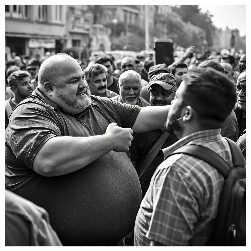 Os dois pombinhos nem notaram a interrupção do paquiderme armado. Isso, aliás, provocou uma reação ainda mais severa do Santana, que deu um empurrão no rapaz. Este, por sua vez, olhou espantado para aquele homem barrigudo.