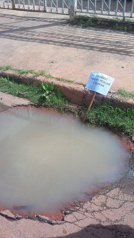 Um buraco tem incomodado a vida dos moradores de Santa Maria. Fica na Quadra 304, entre os conjuntos Q e M.  Indignada com a situação, a moradora da região Gabrielen Oliveira, mandou uma foto para o zapzap, ressaltando que foi necessário colocar um aviso no buraco, proibindo nadar, pescar e surfar. Ela pede socorro ao governo para que cumpra sua obrigação, já que paga seus impostos na esperança de um retorno em serviços públicos de qualidade.