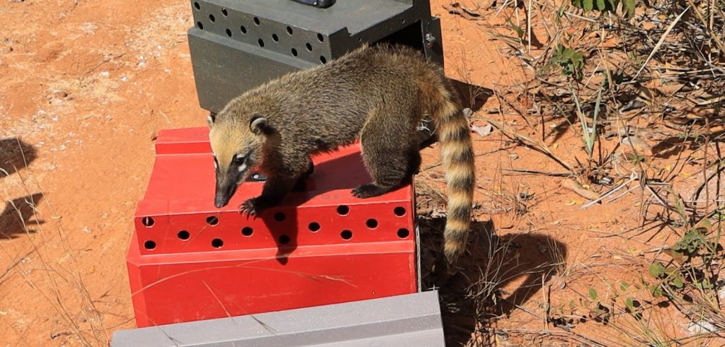 Quanto aos quatis, que eram quatro irmãos, um deles morreu durante o resgate. Eles foram encontrados sozinhos sem a mãe, em 2024, após os incêndios florestais. Depois de um ano de trabalho conjunto entre o Cetas e o Hfaus, com atividades de enriquecimento ambiental, voltadas ao desenvolvimento de comportamentos naturais, os animais também foram considerados aptos à reintegração.