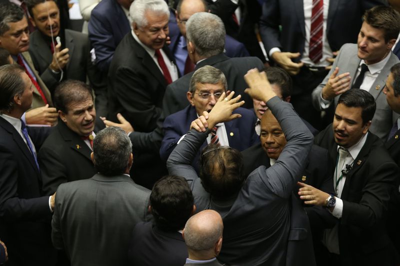 A base governista reuniu quórum necessário e os debates foram retomados, com os partidos encaminhando a votação das bancadas, quando orientam os deputados como devem votar. Após o encaminhamento, Maia iniciou a votação nominal: cada deputado era chamado ao microfone para proferir seu voto.