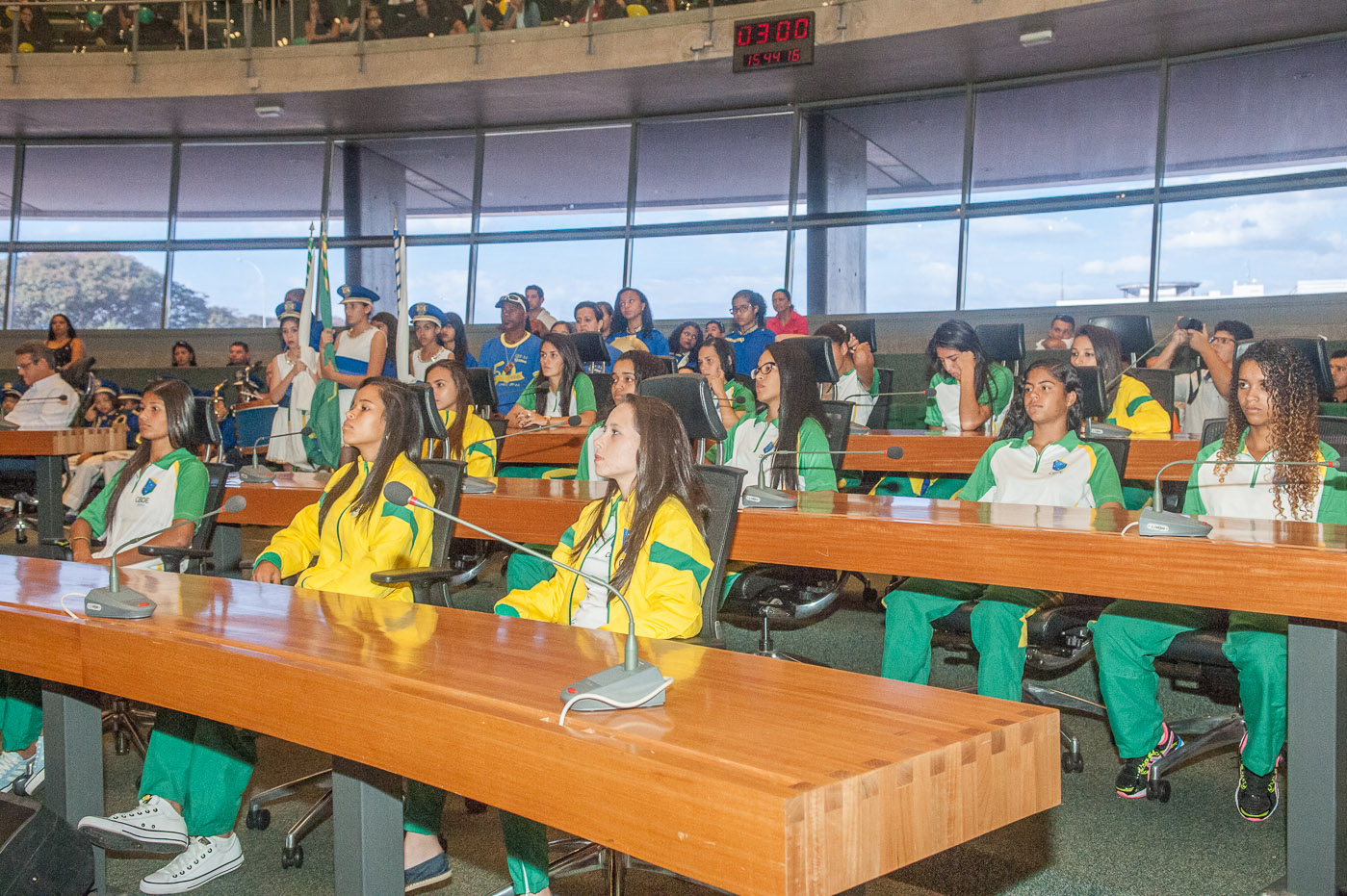 “Ainda não consigo ter noção do que a gente fez e eu nem sei mais o que sonhar”, sintetizou a capitã da equipe campeã, a Vitória – uma das mais experientes do grupo. Ela agradeceu a homenagem em nome de todo o time. E lembrou todos os percalços que enfrentaram, inclusive para obtenção de passaportes. “Agradeço especialmente o apoio e dedicação dos nossos pais”, destacou.