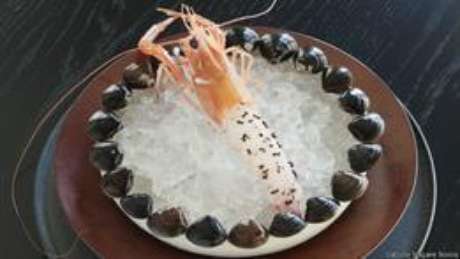 Camarão vivo regado a formigas pretas; prato custa 900. Vai pedir?