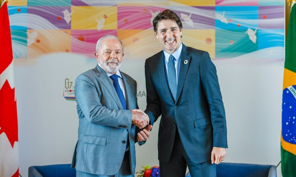 Lula Encontrou-se na manhã de domingo (horário local) no Japão, com o primeiro-ministro do Canadá, Justin Trudeau. Os dois conversaram sobre diversos assuntos, com destaque para comércio bilateral, meio ambiente e a guerra na Ucrânia. Palavras do próprio presidente, em postagem nas redes sociais: Falamos sobre o comércio entre nossos países, a necessidade de esforços conjuntos na defesa do meio ambiente e sobre a guerra na Ucrânia. Trudeau reforçou que está feliz com a volta do protagonismo brasileiro no debate ambiental no mundo. Vamos trabalhar juntos e acredito que podemos dobrar as relações comerciais entre nossos países”.