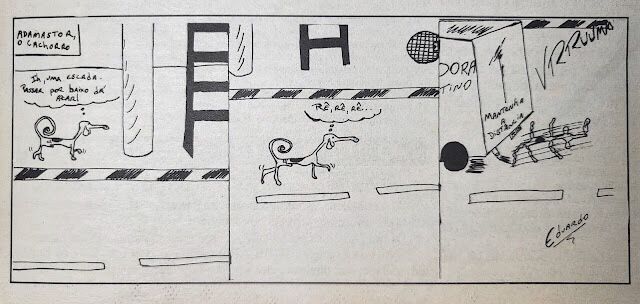 Pois bem, ele é tão especial, que no dia em que surgiu nas páginas de um antigo jornal carioca, Catraca, virou parte do asfalto da avenida Nossa Senhora de Copacabana, como você pode constatar olhando a tirinha acima. Morreu! Mas ressuscitou, na edição seguinte, como pode ser facilmente comprovado observando o quadrinho abaixo. Seu nome? Adamastor.