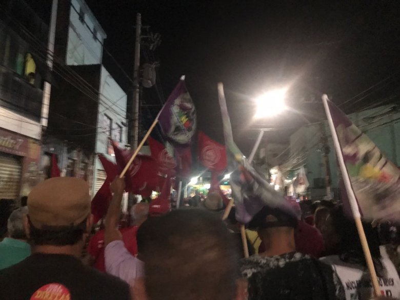 No caminho a militância petista cantava músicas de campanha e os hinos do Bahia e do Vitória e entoava gritos de guerra como “Brasil Urgente, Lula Presidente”. Lula, bem humorado, distribuiu abraços e pousou para fotos com admiradores. Depois de fazer uma baldeação, o ex-presidente terminou o trajeto dentro da cabine do motorista do Metrô.
