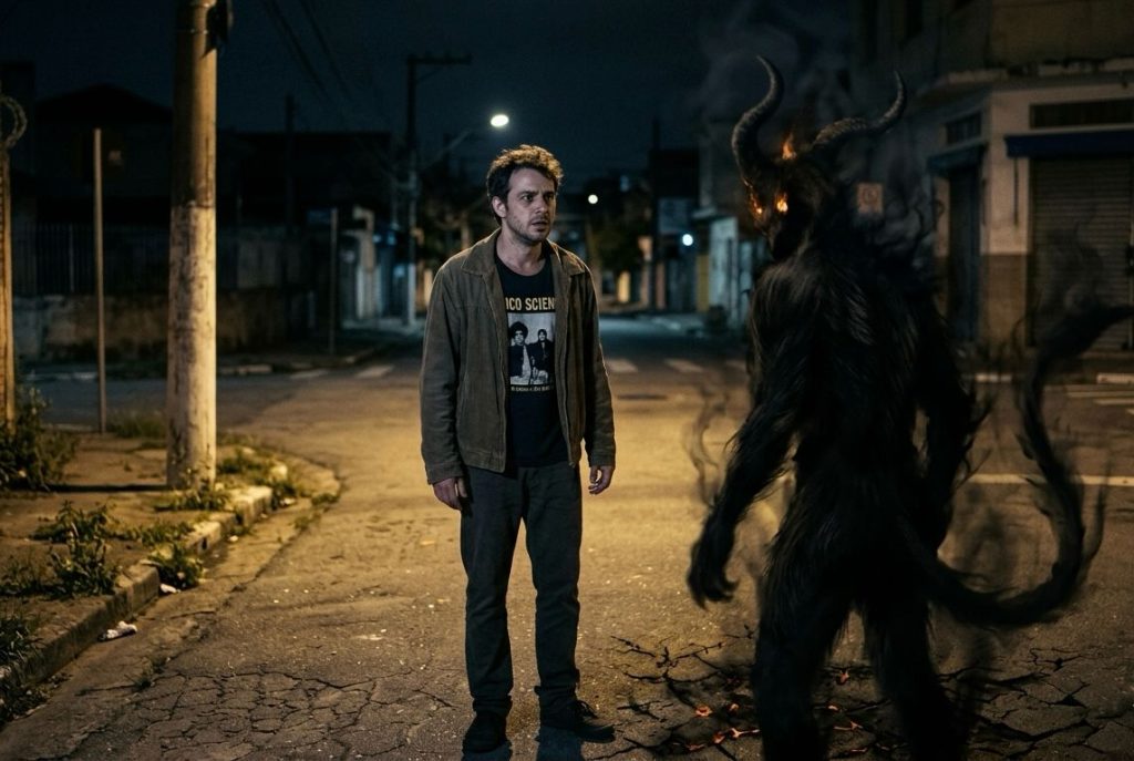 Certa madrugada, Carlos Frederico voltava a pé para casa quando, numa encruzilhada, avistou um vulto. Na verdade, uma nuvem escura, sem contornos definidos, que aos poucos foi ganhando forma: dois chifres, olhos de fogo, feições grotescas, apavorantes, um corpo nu coberto de pelos e um rabo – a representação de um demônio que conhecia desde a infância, nascido em uma família católica (quem disse que catolicismo e socialismo são inconciliáveis?).