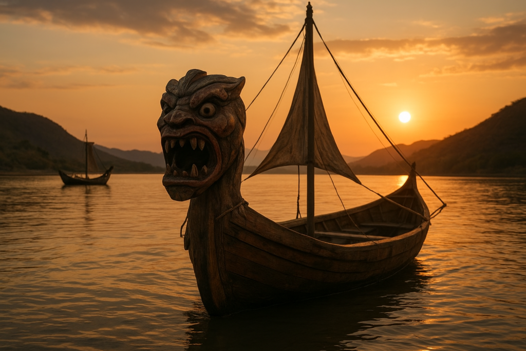 Curiosamente, a crença não é exclusiva das margens do Brasil profundo. Nos fiordes e mares gélidos da Escandinávia, os vikings também adornavam seus navios — os temidos dracares — com cabeças de dragões, serpentes e monstros marinhos. O propósito era semelhante: intimidar inimigos e afastar espíritos malignos. Assim como as carrancas do sertão, os dragões nórdicos rugiam silenciosamente contra o medo e o desconhecido.