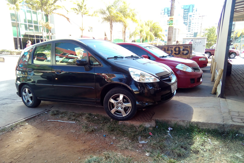 Pela manhã, próximo a um comércio da região, Notibras flagrou um carro em cima da calçada. Antes de qualquer coisa, a cena já configurava um crime. Porém, ao observar mais atentamente o veículo, descobriu-se que o dono do carro era um servidor, provavelmente da área da saúde.