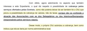 “Desse modo, o próprio CNJ autorizou a cobrança, bem como indicou que ela se daria por norma administrativa local”, afirma o órgão.