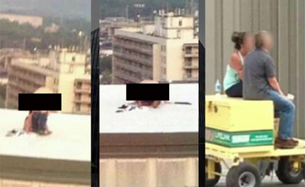 Casal ousado flagrado fazendo sexo em telhado de tribunal