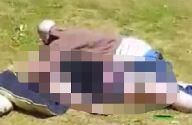 O casal parou o ato sexual quando a pessoa que filmava e um amigo se aproximaram e os repreenderam.