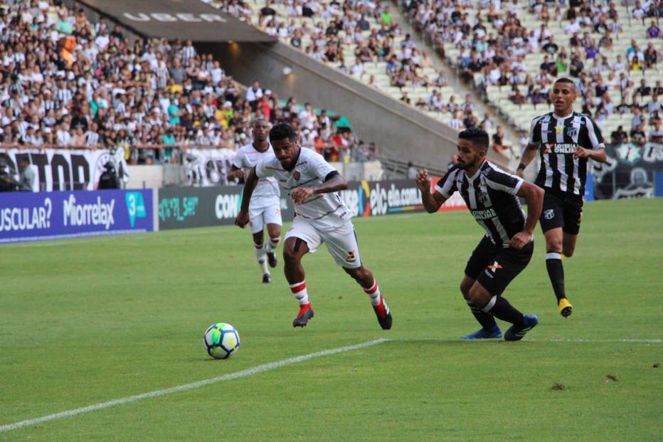 Na frente do placar, o time cearense tirou o pé e só foi levar perigo novamente aos 44 minutos. Felipe Jonatan cruzou, a defesa rubro-negra vacilou e a bola sobrou para Leandro Carvalho desviar pela linha de fundo dentro da pequena área.