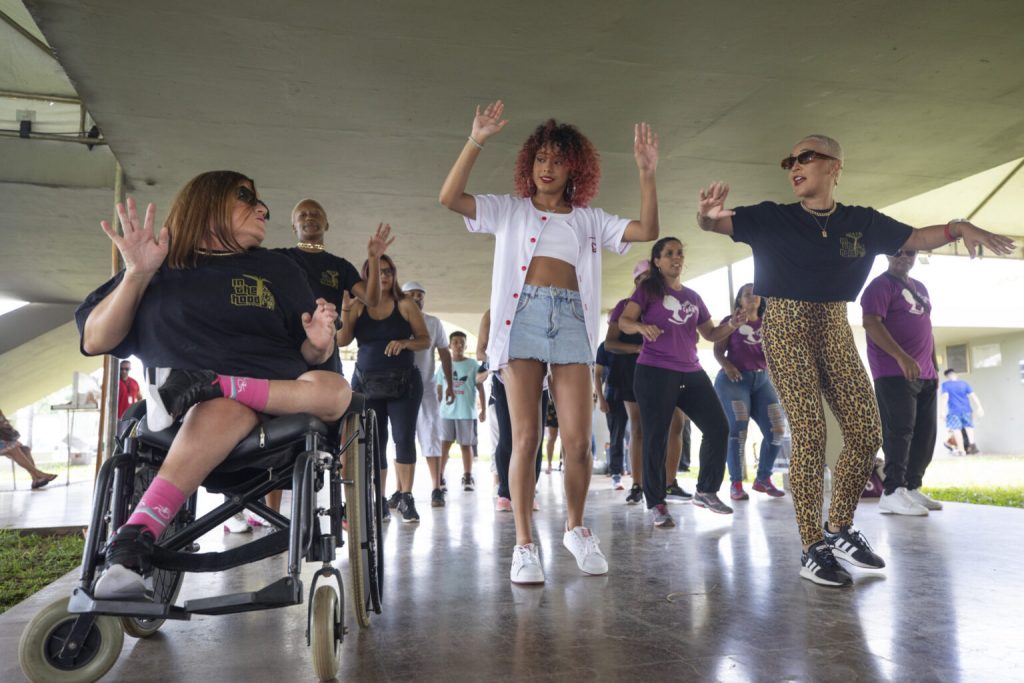A moradora de Ceilândia Neta Fernandes, 55, já dançava com bastante vontade no espaço com DJ. Aposentada e presidente da associação Movimento Luz, ela destaca a importância do evento para as pessoas com deficiência (PcDs).