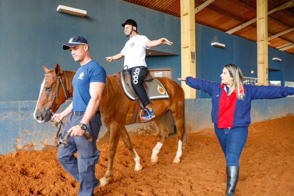 “Os animais que a gente utiliza na equoterapia são os mais mansos e dóceis, com temperamento favorável para o tratamento, assim como o porte”, explica o comandante do 3ª Esquadrão, capitão Rafael Monção. Antes de serem encaminhados para a terapia, os cavalos passam pelo policiamento e pela escolinha de equitação.