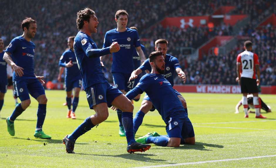 O Chelsea buscou uma improvável virada para derrotar o Southampton e vencer neste sábado, pela 33.ª rodada do Campeonato Inglês. Fora de casa, a equipe perdia por 2 a 0 até os 24 minutos do segundo tempo, quando deixou para trás a péssima atuação e, comandada por Giroud, marcou três gols em sequência para vencer por 3 a 2.