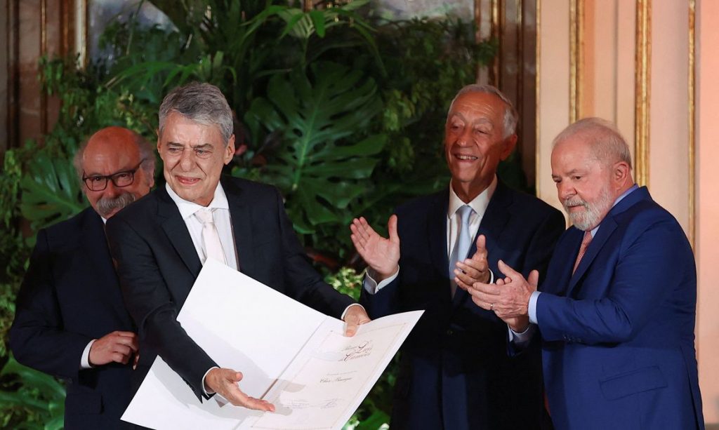 O presidente Luiz Inácio Lula da Silva e o presidente de Portugal, Marcelo Rebelo de Sousa, entregaram o Prêmio Camões, o principal da literatura em língua portuguesa, ao músico, dramaturgo e escritor brasileiro Chico Buarque. A cerimônia ocorreu nesta segunda-feira (24), no Palácio Queluz, em Lisboa.