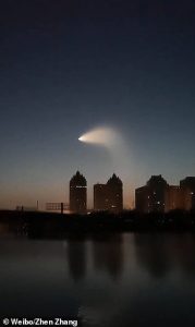 No início de junho, moradores de várias províncias do centro da China afirmaram ter visto uma misteriosa luz se movendo pelo céu. Na época, comandantes da Força de Foguetes do Exército de Libertação do Povo e a Marinha chinesa insinuaram que poderia ser um teste militar secreto.