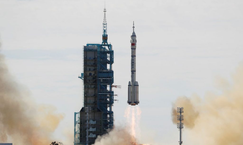 A nave Shenzhou-12 atracou à estação espacial da China cerca de seis horas depois de partir do centro de lançamentos de Jiuquan, na orla do deserto de Gobi, no noroeste da China.