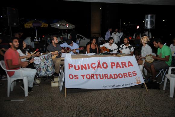 Um grupo de ativistas reuniu-se na Praça dos Três Poderes na noite desta quarta-feira 1, para protestar contra o golpe militar de 1964 e pedir a revisão da Lei da Anistia (Lei 6.683, de 1979) para que os acusados de tortura sejam punidos. O evento marcou a passagem dos 51 anos do golpe que deu início à ditadura militar (1964-1985) no Brasil.