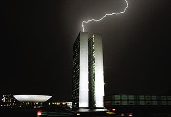 As primeiras chuvas para a capital da República, previstas para a noite desta segunda-feira após um longo período de estiagem, devem chegar em meio a tempestades de granizo e ventos de até 90 quilômetros por hora, conforme alertou a Secretaria de Defesa Civil.